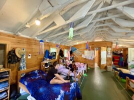 Each cabin counselor and specialist is assigned (with two or three co-counselors) to live with a specific bunk. A typical bunk consists of 7 – 9 campers of the same grade level and gender identity. This is a fundamental component of the job, as cabin life is central to campers’ experience at Akeela. The cabin group becomes their family for the summer, which means that counselors are filling the roles of “parents”, along with being big siblings, role models, social coaches, cheerleaders, limit-setters, growth agents, and so much more. The campers in each bunk are often asked to work together as a team, requiring their counselors and specialists to facilitate this team building, teach & model respect, and generate group spirit.